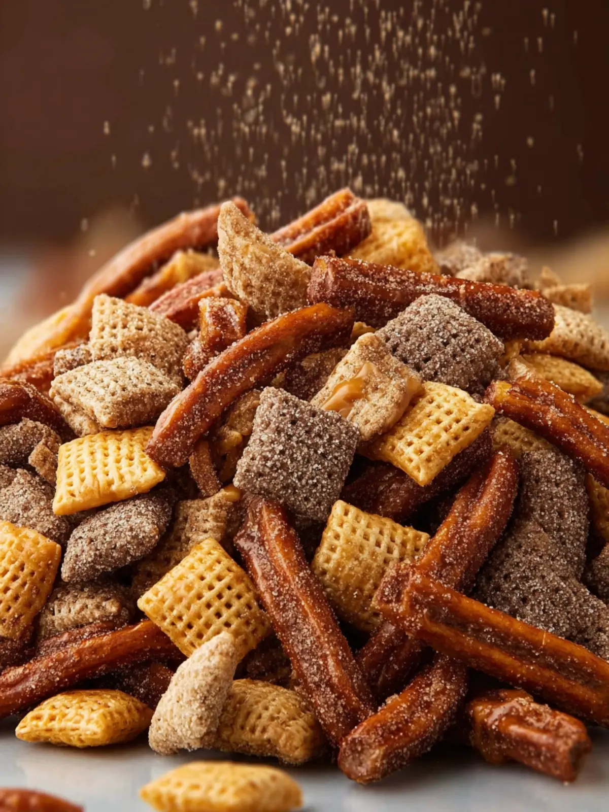Chex Cereal: The base of this mix, I use a combination of rice and corn Chex for their distinctive crunch. The airy texture provides the perfect vessel for holding all that delicious caramel coating.