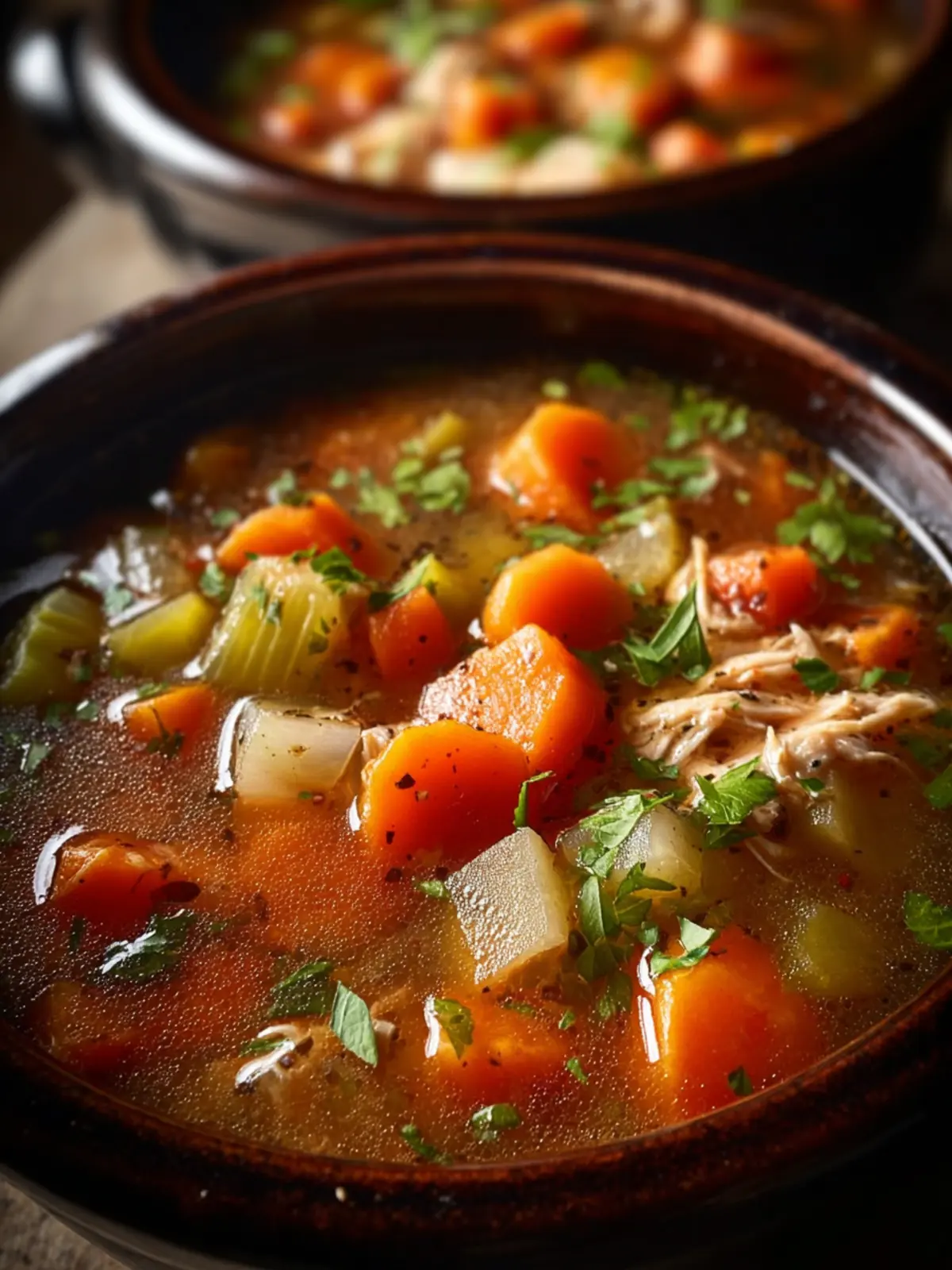A comforting and hearty chicken soup made in a crockpot.