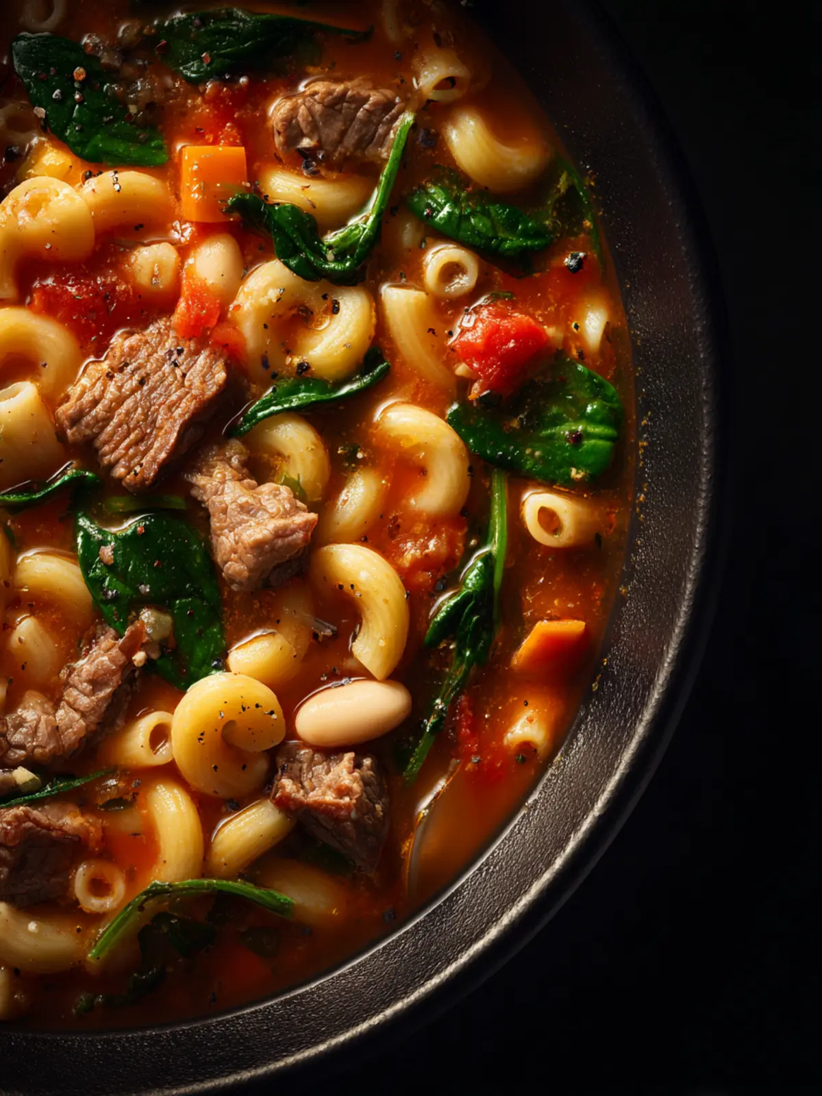 Hearty Beef Macaroni Soup: Cozy Comfort with Spinach & Beans