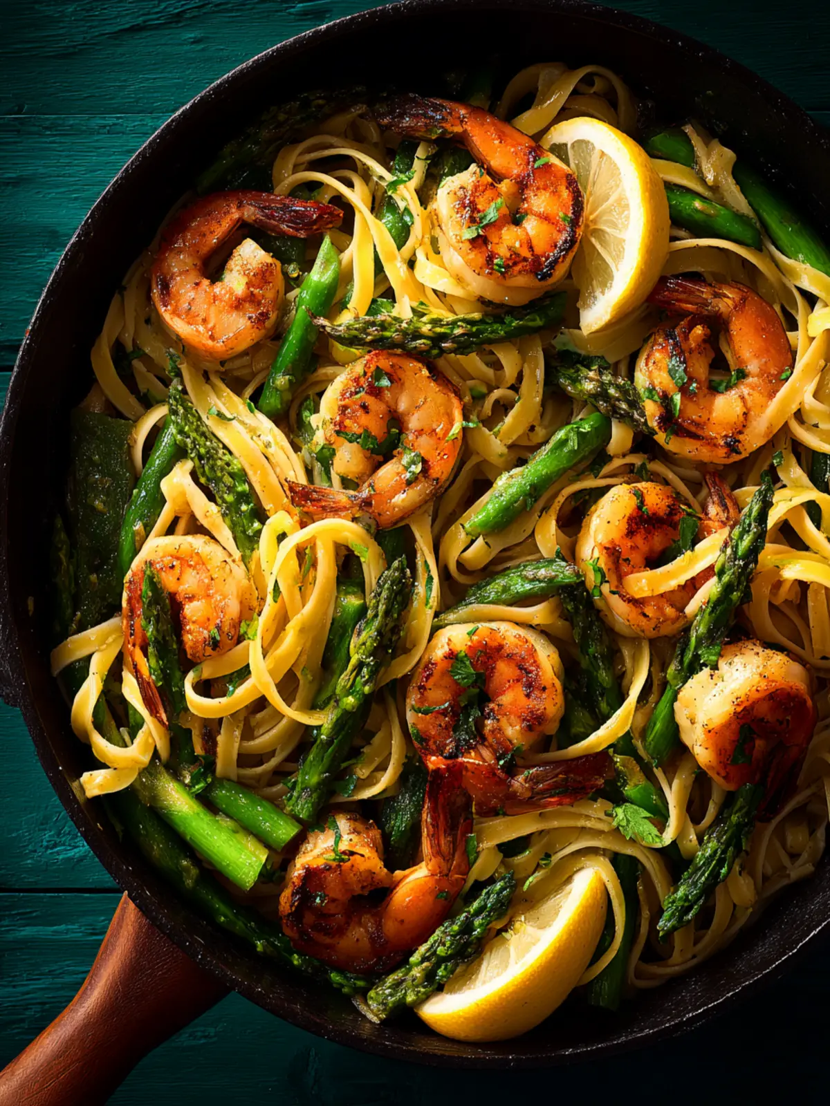 Garlic Shrimp with Asparagus and Lemon Pasta