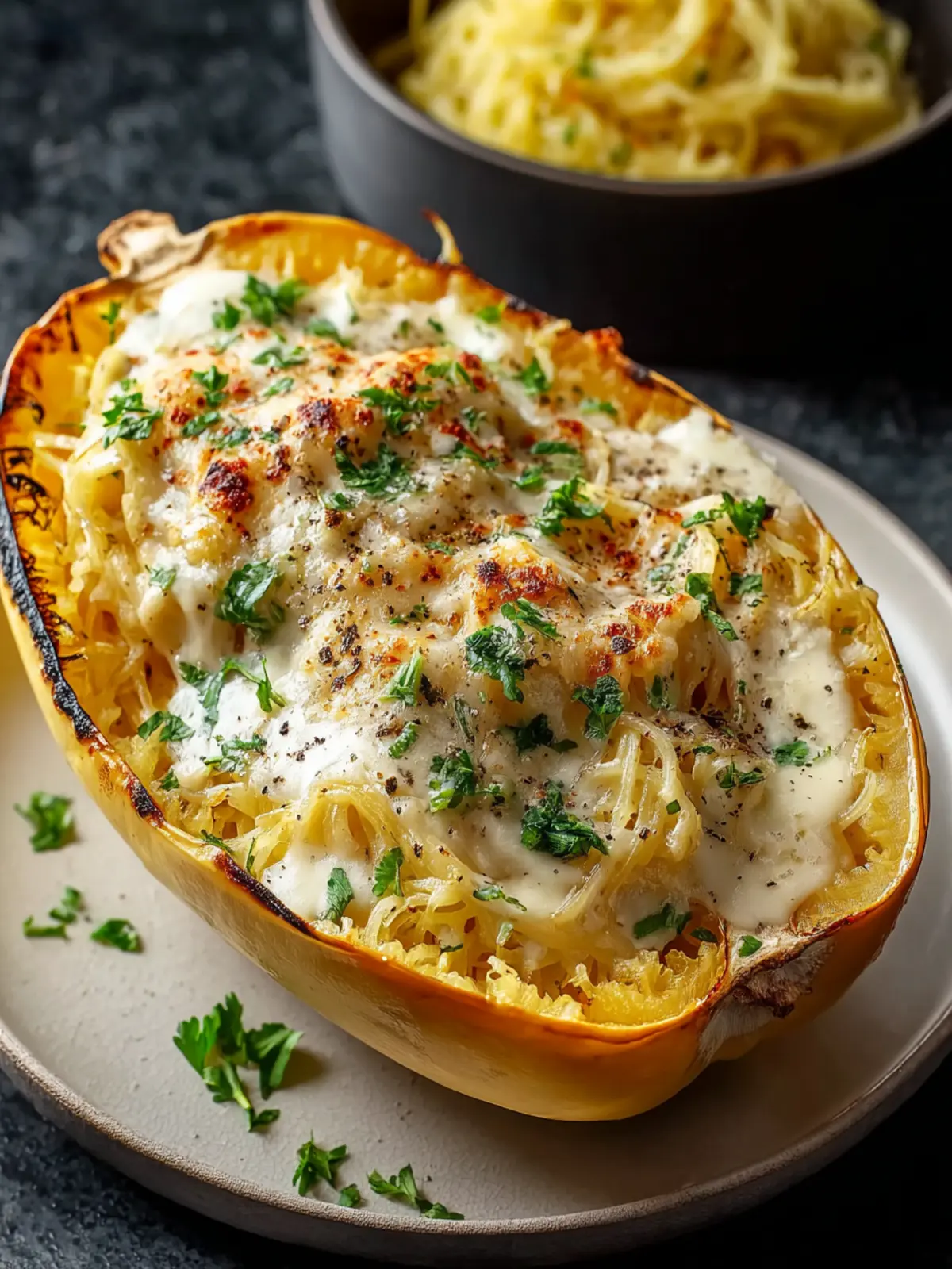 Bringing together roasted spaghetti squash and creamy Alfredo sauce is an invitation to a comforting culinary experience. This dish is not only delicious but also a guilt-free treat that will impress even the pickiest eaters in your circle. With its delightful balance of flavors and textures, it becomes a wholesome option for dinner or a special gathering. Don’t hesitate to explore creative variations with herbs or additional vegetables to make it your own. Dive into this satisfying meal, and let it brighten your day with its simplicity and taste. Your taste buds will surely thank you!