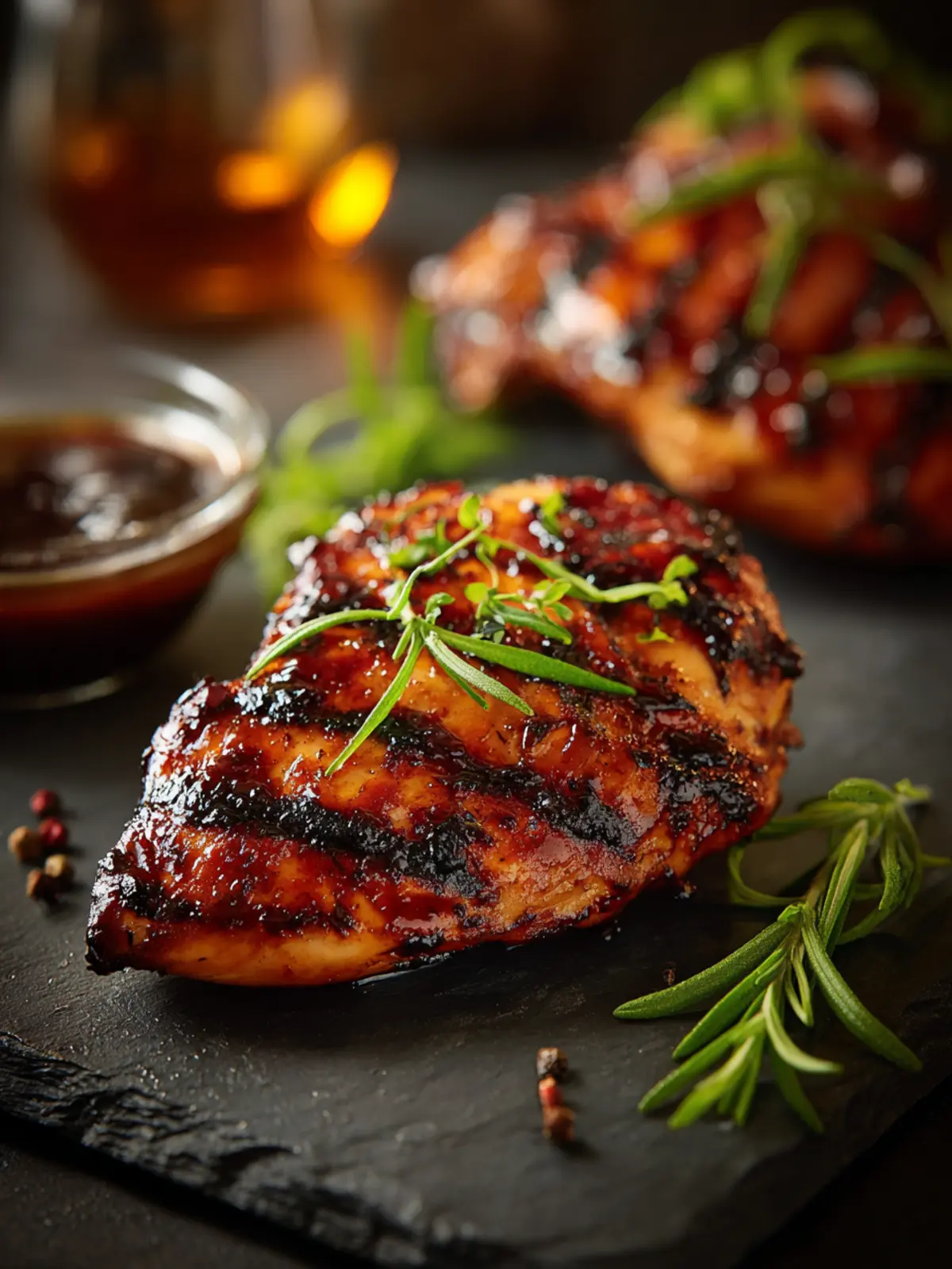 Delicious grilled teriyaki chicken breasts marinated in a flavorful sauce.